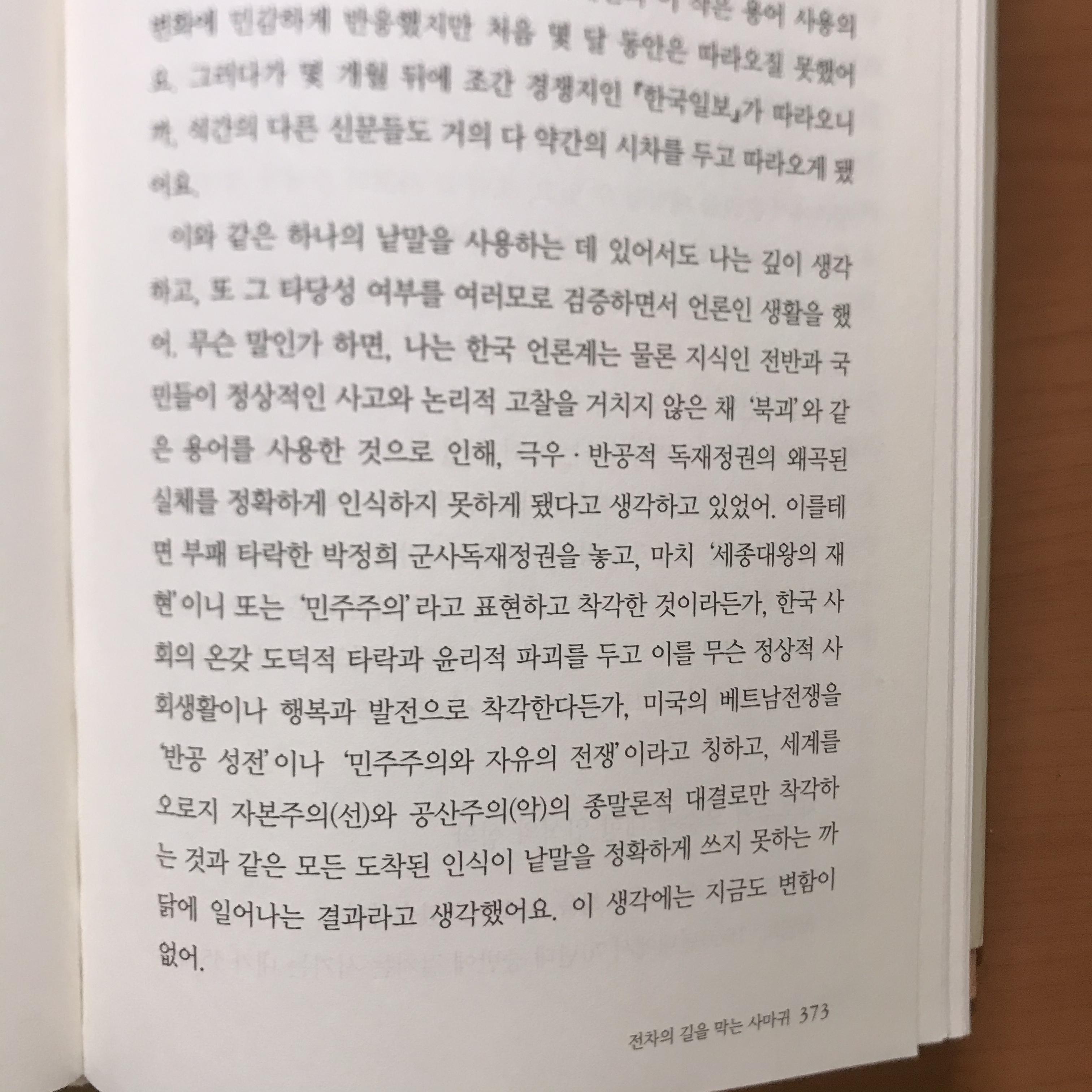 “자화자찬 같아서 쑥스럽기는 하지만, 내가 그 시기에 했던 일들을 생각하면 한국 지식인들의 눈동자에 끼어 있던 두터운 장막을 걷어주고 객관적인 세계 현실에 대해서 인식을 달리하게 만든 적지 않은 역할을 했다고 자부해. 그러기 위해서 내가 겪어야 했던 많은 고통은 이루 다 말하기 힘들지만 말이오” - '대화' 중