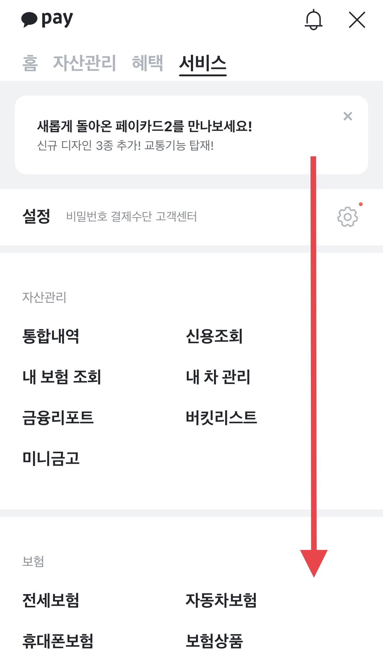 4. 카카오페이 화면에서 [서비스]를 눌러줍니다.