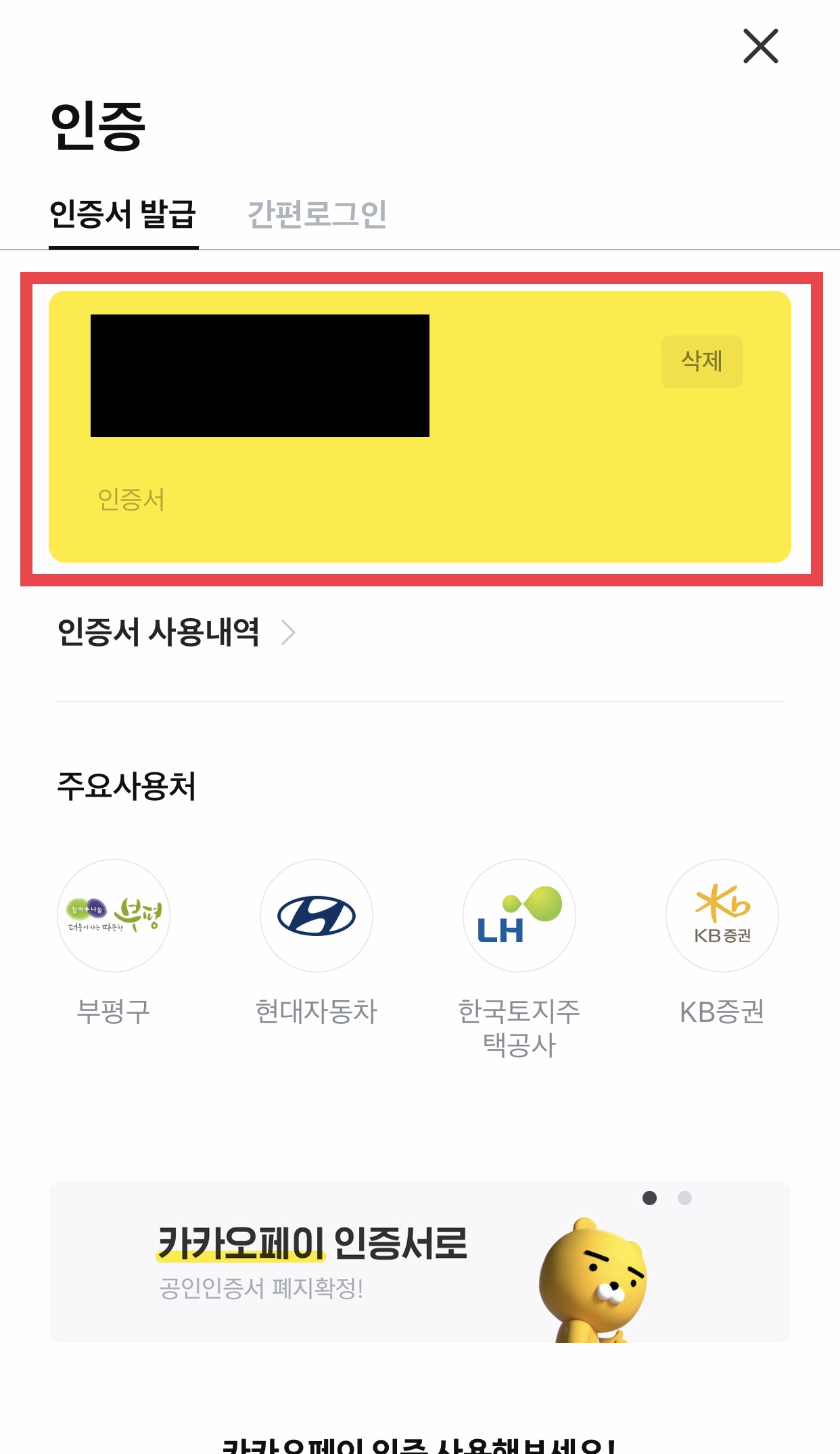 카카오톡(카카오페이)에서 공인인증서 발급받는 방법!!