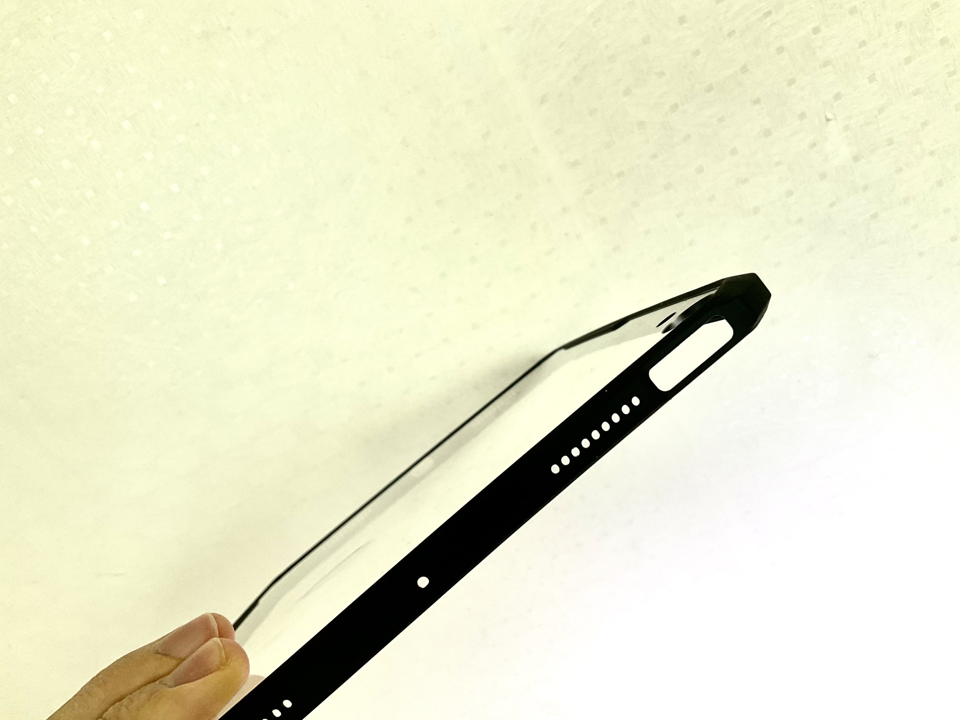 아이패드 에어는 지문 인식하는 부분이 옆쪽에 있기 때문에 이 부분까지 범퍼가 막아버리면 안되겠죠?