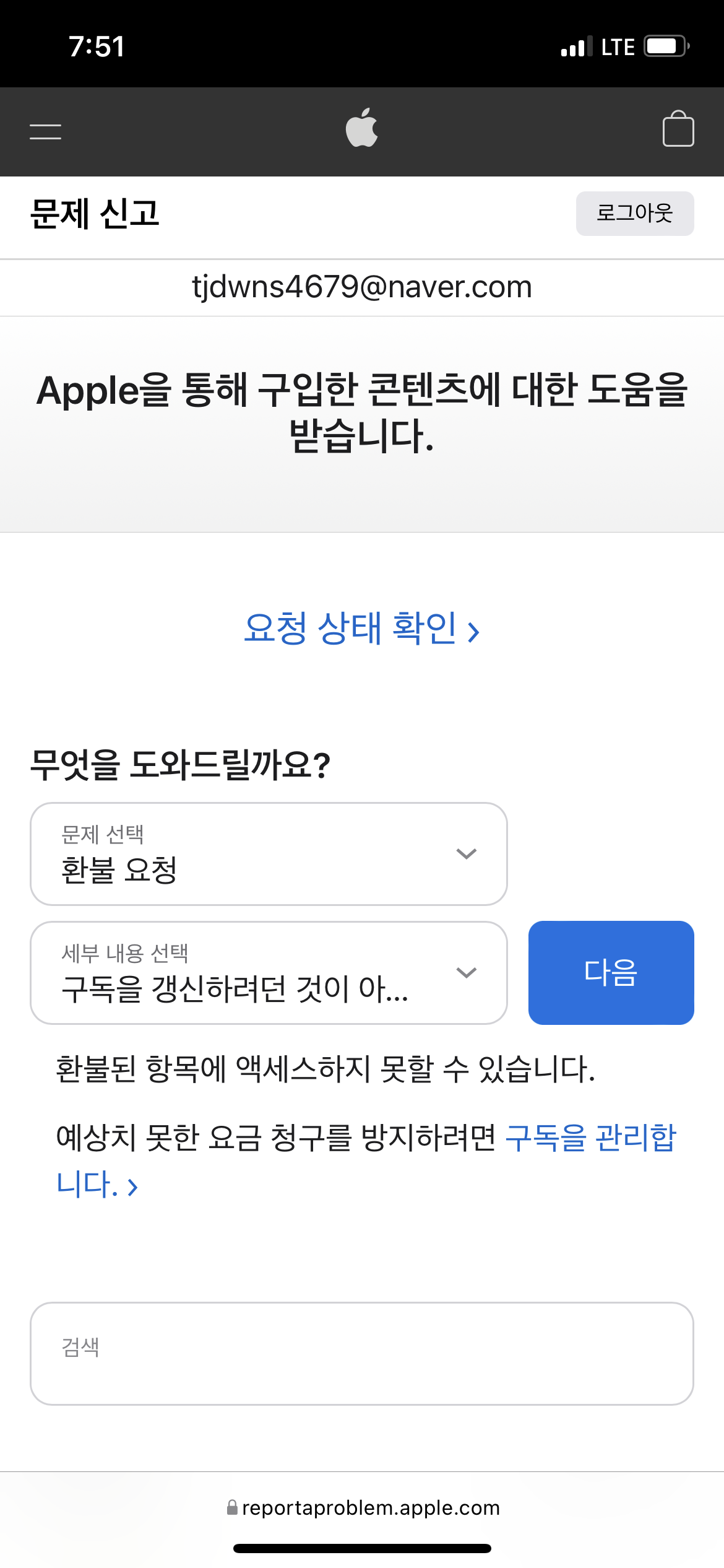 사이트에서 소개하는 것처럼 환불 페이지로 이동해봅시다.